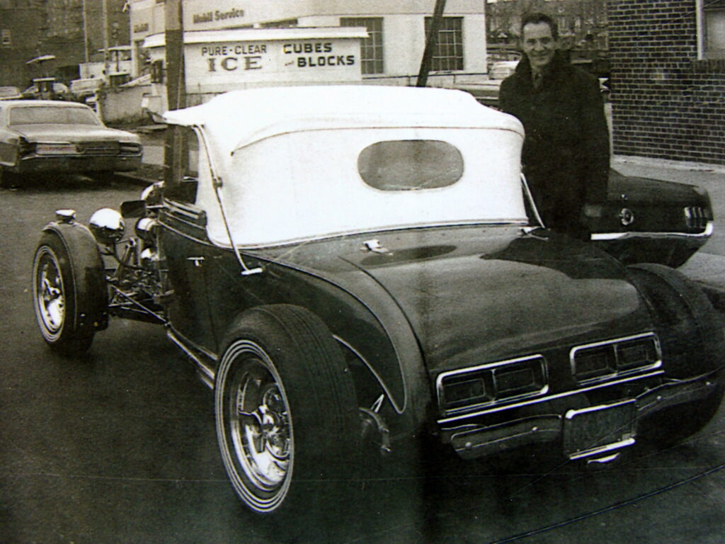 From an older generation of custom hotrods: Geno’s father with his Ford roadster. [‘Geno’ Zandomenego]