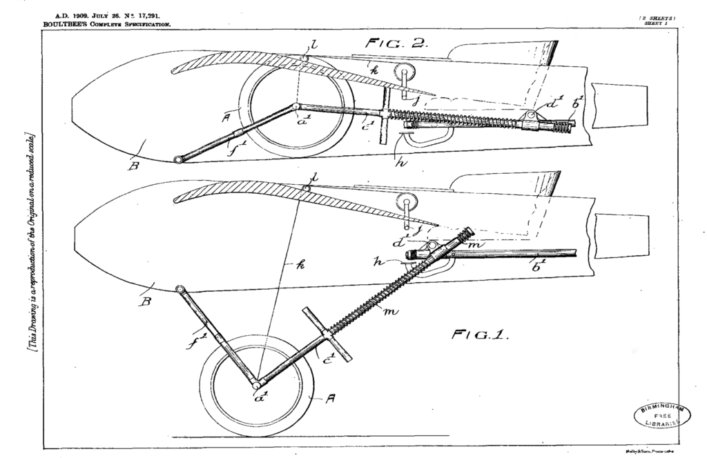 Harold Dalton Boultbee, born 1886 in Eaton, Yorks, graduated from Cambridge in 1908, when young men of a certain economic strata were infected with aero fever. The Wright brothers had proved a kite launched by rubber band and boosted by an anemic motor could sustain flight for a few hundred yards, and changed the world forever. That the litigious Wrights proved more an impediment than a boon to the development of flight was immaterial, as the point was made it could be done, albeit better, and soon was. Boultbee was one of those eager to improve the breed, and in 1909 made his point by patenting the first design for retractable landing gear: it was his first association with wheels on vehicles, but not his last.