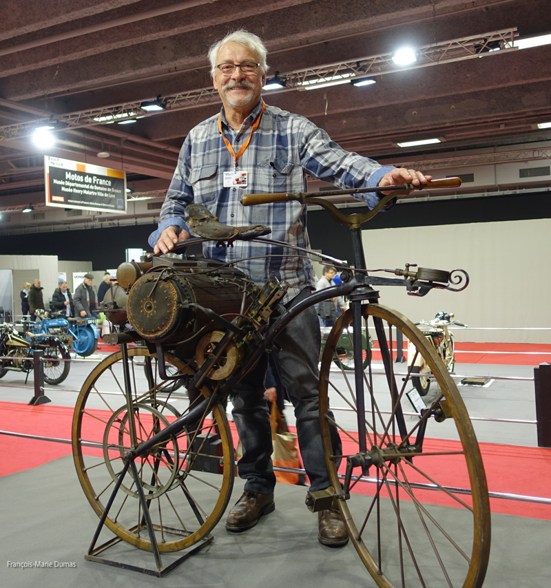 In 1868, Louis-Guillaume Perreaux, a Gadzarts (Arts et Métiers engineering school) graduate, filed a patent for a “high-speed” velocipede. This design was refined six times [several versions were imagined: first with a human-powered inertial drive, then an in-wheel electric motor, and finally a steam – ed], culminating in 1871 with a steam-powered velocipede, the sole surviving example of which has been housed at the Musée du Domaine de Sceaux (Hauts-de-Seine) since 1964. Contemporary accounts attest to the machine’s actual operation. While largely forgotten until the 1990s, Claude Reynaud, a renowned historian of early two-wheeled vehicles, rediscovered the invention and published a book on it. The velocipede was then brought back into the public eye and exhibited on several occasions in increasingly prestigious venues, such as the Guggenheim and Rétromobile exhibits [the Perreaux was part of a remarkable display – curated by Francois-Marie Dumas – at the 2017 Rétromobile in Paris – ed.].
