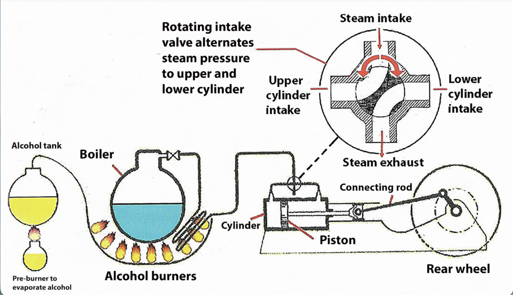 The manufacture of replica velocipedes is broken down into three sub-assemblies: the frame, the engine, and the steam generator. These components require a wide variety of techniques, and here is an overview.