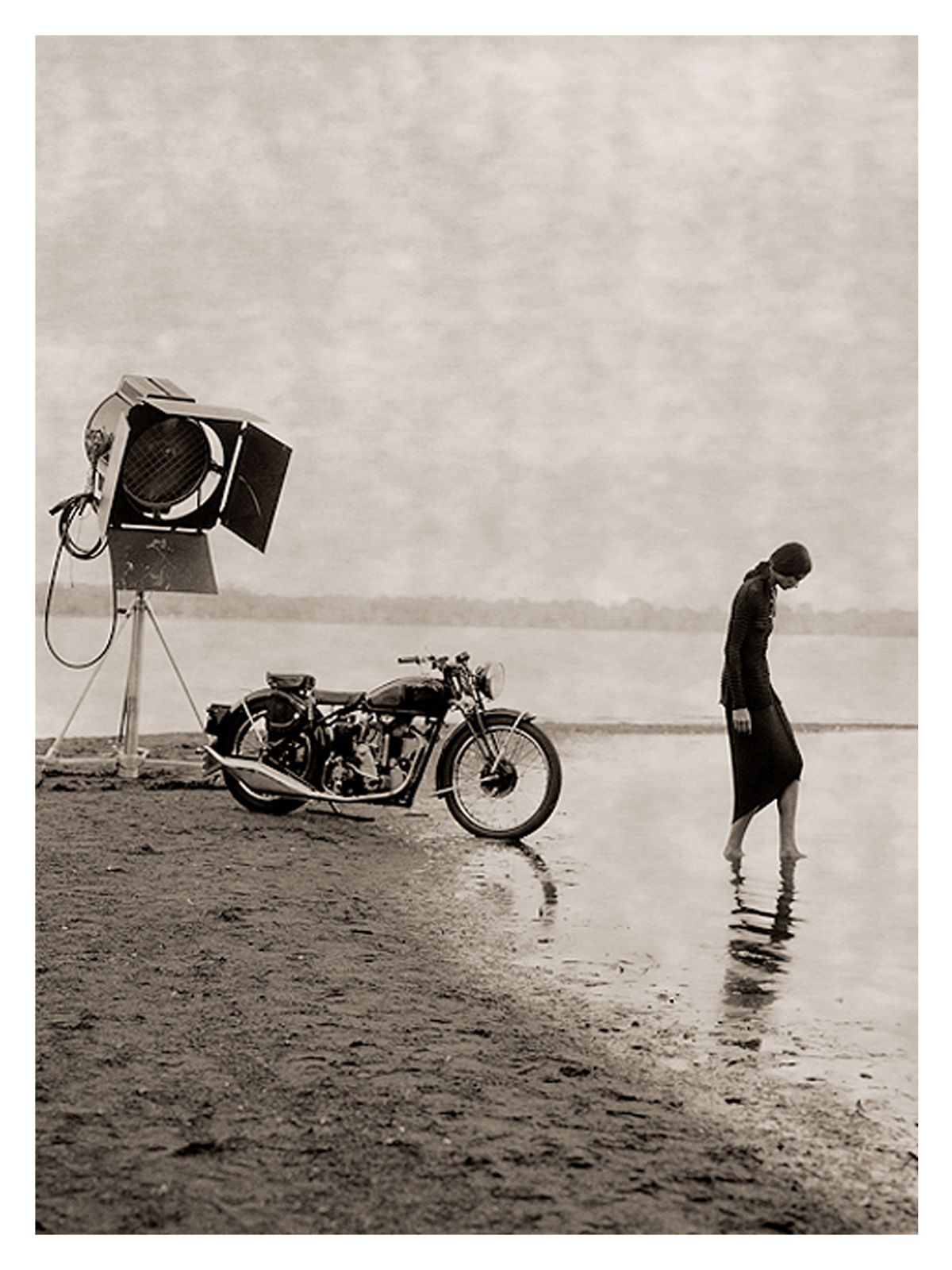 Bill Phelps is best known in the alt.moto world for a series of exquisitely composed shots of models with old bikes (Vincents, Velocettes, Nortons, etc - all his) most of which were taken in 1998/9. He has since moved on to professional work for the likes of Condé Nast, and his work is shown at Robin Rice Gallery in NYC, but he remains an oil-stained gearhead, eager to reveal the epic from a familiar mix of people and machines. I've featured his work in 2010 (his gallery collection) and in 2013 (from Wheels+Waves), and it doesn't age a bit. The current collection is perhaps his best yet, hinting at his maturation as an artist.